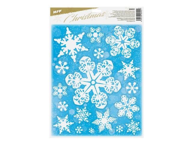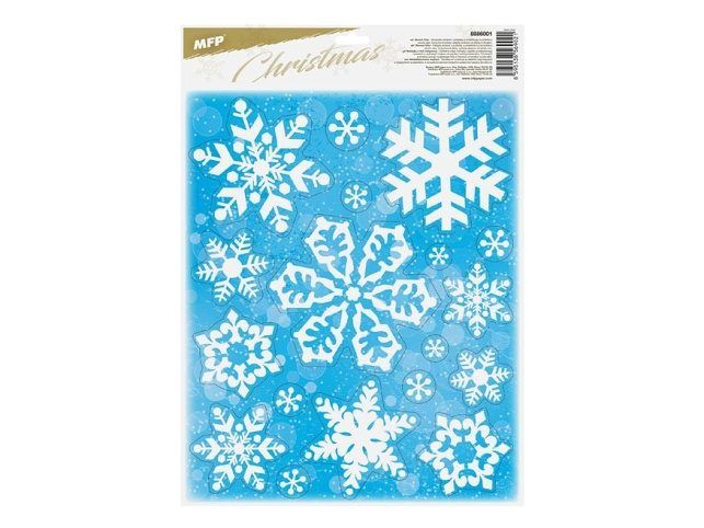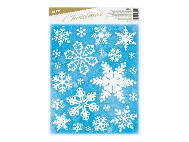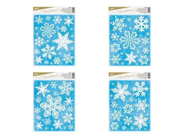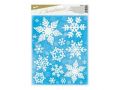 Okenní fólie glitrové ve tvaru vloček. Fólie se lehce odlepují a nalepují a nezanechávají za sebou žádné stopy lepidla.