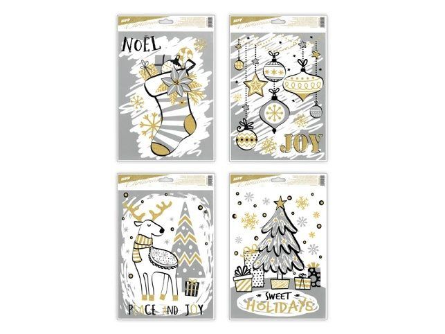 Okenní fólie glitrové - vánoční motivy - Vyzdobte si okno těmito krásnými samolepkami na okno. Vytvoří Vám kouzelnou atmosféru domova. NÁVOD: Sloupněte z podložky obrázek a umístěte na čisté, případně navlhčené sklo stranou, která byla na podložce. Obrázek elektrostaticky přilne. Folie se snadno sloupne a dá se přemístit. Uvedená cena je za 1 ks,