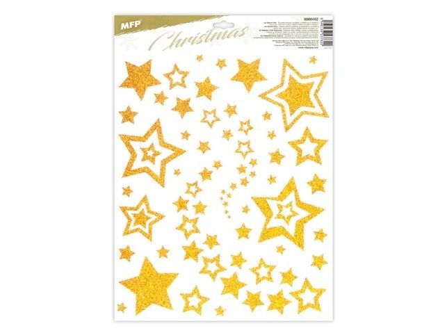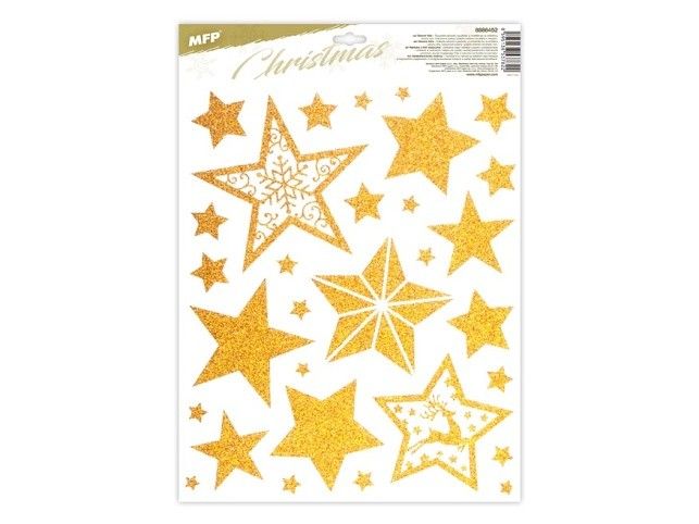 Okenní fólie hvězdy zlaté barvy s glitry. Tento doplněk Vám vytvoří kouzelnou atmosféru domova. Fólie neobsahuje lepidlo, jednoduše elektrostaticky přilne na čistém okně, zrcadle apod. NÁVOD: Sloupněte obrázek z podložky a umístěte na čisté, případně navlhčené sklo stranou, která byla na podložce. Obrázek elektrostaticky přilne. Snadno se sloupne a dá se přemístit. Uvedená cena je za 1 ks.