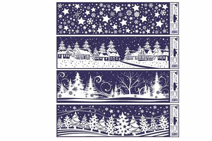 Okenní folie vánoční krajinky pruh 45x12cm.