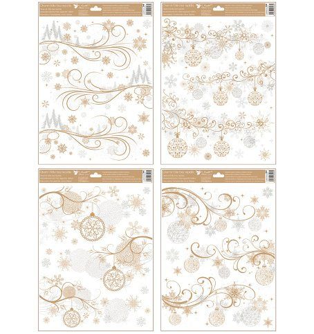 Dekorační okenní fólie- elektrostatická - neobsahuje lepidlo- nezanechává žádnou stopu- vhodná na haldké povrchy (sklo, výloha, zrcadlo, kachličky)- mix motivů- rozměr archu: 30 x 42cm