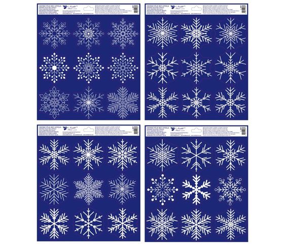 Dekorační okenní fólie- elektrostatická - neobsahuje lepidlo- nezanechává žádnou stopu- vhodná na haldké povrchy (sklo, výloha, zrcadlo, kachličky)- mix motivů- rozměr archu: 30 x 33,5cm