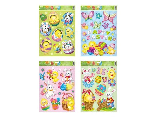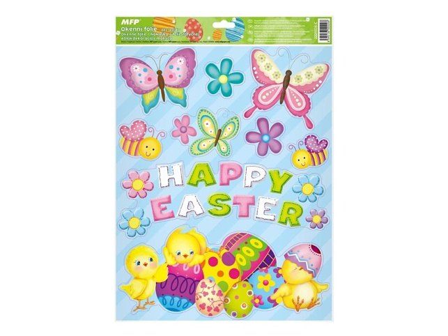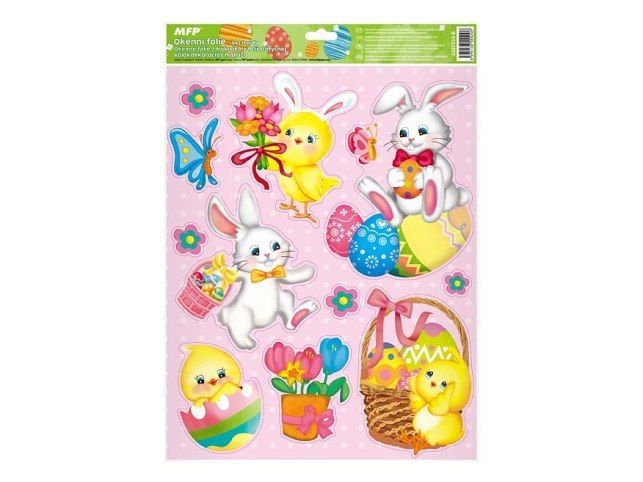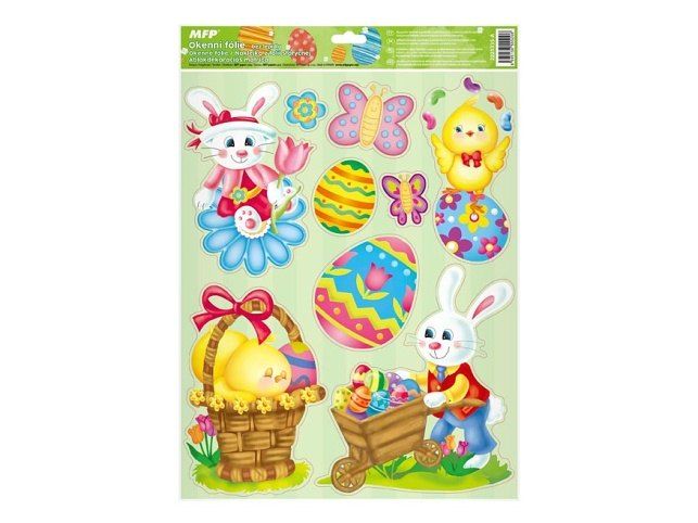 Okenní fólie - velikonoční kuřátka, vajíčka, motýlci, zajíčci - Vyzdobte si okno těmito krásnými samolepkami na okno. Vytvoří Vám kouzelnou atmosféru domova. NÁVOD: Sloupněte obrázek z podložky a umístěte na čisté, případně navlhčené sklo stranou, která byla na podložce. Obrázek elektrostaticky přilne. Folie se snadno sloupne a dá se přemístit. Cena za 1 ks,