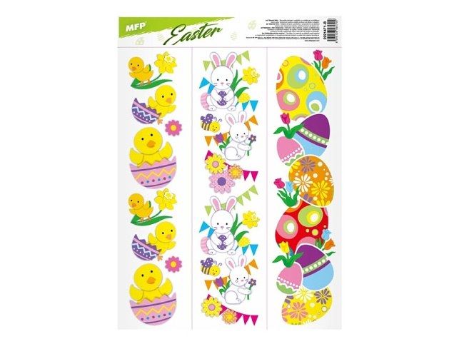 Okenní fólie bez lepidla - velikonoční kuřátka, vajíčka, zajíčci - Vyzdobte si okno těmito krásnými samolepkami na okno. Vytvoří Vám kouzelnou atmosféru domova. NÁVOD: Sloupněte obrázek z podložky a umístěte na čisté, případně navlhčené sklo stranou, která byla na podložce. Obrázek elektrostaticky přilne. Folie se snadno sloupne a dá se přemístit. Cena za 1 ks,