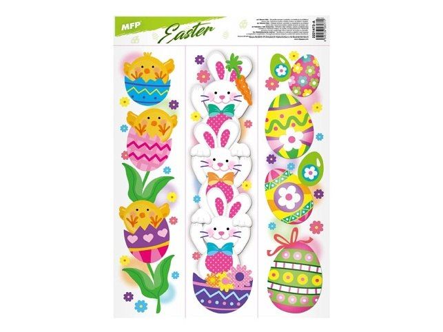 Okenní fólie bez lepidla - velikonoční kuřátka, vajíčka, zajíčci - Vyzdobte si okno těmito krásnými samolepkami na okno. Vytvoří Vám kouzelnou atmosféru domova. NÁVOD: Sloupněte obrázek z podložky a umístěte na čisté, případně navlhčené sklo stranou, která byla na podložce. Obrázek elektrostaticky přilne. Folie se snadno sloupne a dá se přemístit. Cena za 1 ks,