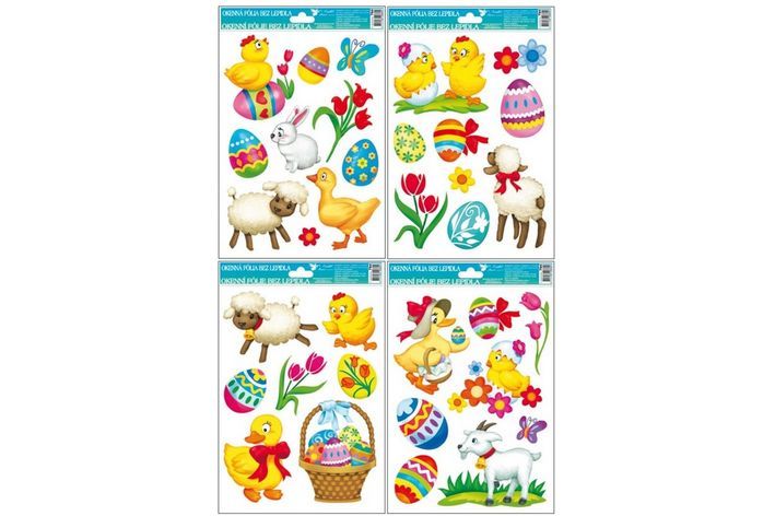 Dekorační okenní fólie. Naše okenní fólie neobsahují lepidlo. Na plochu přilnou elektrostaticky a nezanechávají tedy po sobě žádnou stopu. Vhodné jsou jakékoli hladké plochy, například sklo, výlohy, zrcadla nebo kachličky. Čisté - bez lepidla - opakovaně použitelné Použití: 1. Doporučujeme před použitím plochu očistit od prachu a jiných nečistot. 2. Fólie se snadno aplikuje sejmutím z podkladového papíru a umístěním na hladkou plochu. 3. Fólii přiložte a vyhlaďte případné bublinky rukou nebo suchým hadříkem. 4. Po použití je možné je uložit na původní podkladový papír a uskladnit na další sezónu.