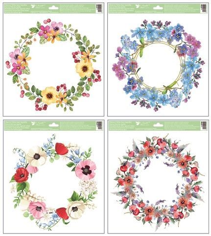 Okenní fólie věnce z květin s glitry 30 x 33,5 cm