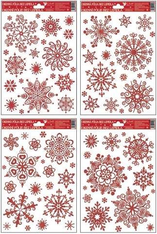 Okenní fólie vločky sněhový efekt červená,27x20cm