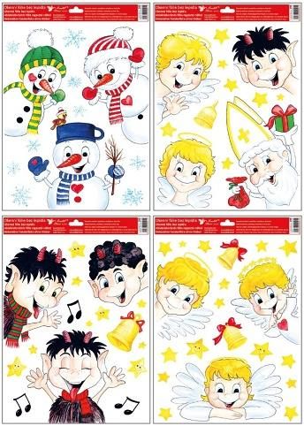 Okenní fólie vykukující mikulášské postavičky 30 x 42 cm