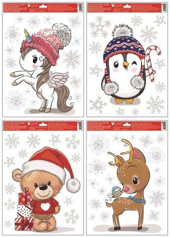 Okenní fólie zvířátka v zimě s glitry 30 x 42 cm