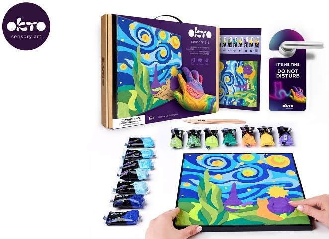 OKTO Malování hmotou podle čísel motiv "Malý princ noční obloha". Velikost plátna 29x29 cm. Vytvarujte obrázek podle čísel. Obsah balení - plátno, obrázkový návod, modelovací nástroj, sada barevých tvarovacích směsí 14 ks.