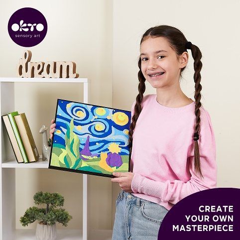 OKTO Malování hmotou podle čísel motiv "Malý princ noční obloha". Velikost plátna 29x29 cm. Vytvarujte obrázek podle čísel. Obsah balení - plátno, obrázkový návod, modelovací nástroj, sada barevých tvarovacích směsí 14 ks.