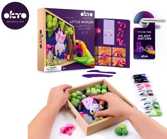 OKTO Modelování Malý svět v rámečku motiv "Netopýr". Velikost rámu 21x21 cm. Vytvarujte 3D scénu podle návodu. Obsah balení - dřevěný rám, obrázkový návod, dřevěný modelovací nástroj, sada samoschnoucí modelovací hmoty, akrylový lak 20 ml, štětec.