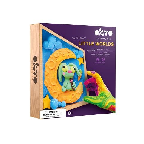 OKTO Modelování Malý svět v rámečku motiv "Zajíček na měsíci". Velikost rámu 21x21 cm. Vytvarujte 3D scénu podle návodu. Obsah balení - dřevěný rám, obrázkový návod, dřevěný modelovací nástroj, sada samoschnoucí modelovací hmoty, akrylový lak 20 ml, štětec.
