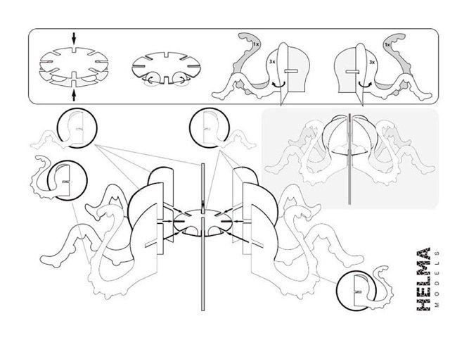 Oiginální papírová 3D skládačka k vymalování dle vlastních představ bez použití nůžek, nebo lepidla 3D omalovánky Helma Models vhodné pro děti od 4 let Balení o velikosti A4 s chobotnicí.