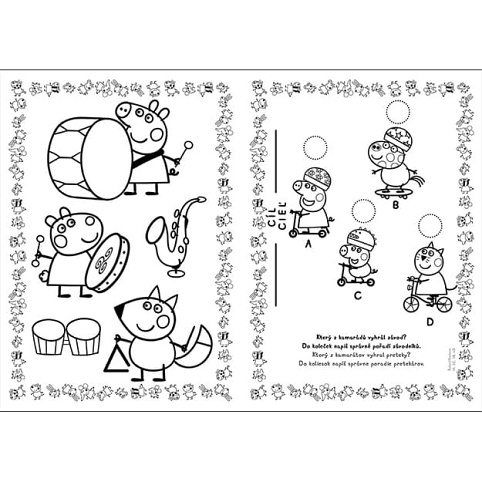Omalovánky obsahují 16 černobílých stran s obrázky k vybarvení a oblíbenými aktivitami.