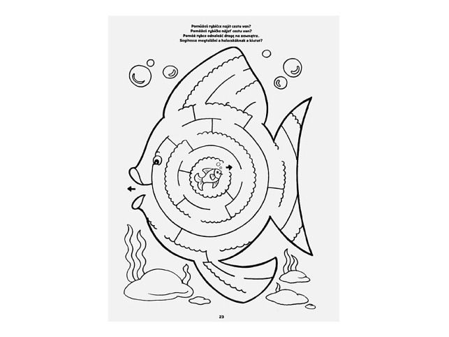 Bludiště - Mořská zvířata. Udělejte si pohodové odpoledne s dětmi a najdete cestu bludičtěm. Děti se zabaví a navíc potrápí své mozkové závity. Na poslední stránce jsou řešení všech bludiští. Bludiště jsou jednodichá, tudíž vhodné i pro ty nejmenší děti. Formát: A4 Papír: 80g Počet předloh: 32 Desky omalovánek: 280g papíru s laminem Počet stran: 32 Varování: Nevhodné pro děti do 3 let. Nebezpečí vdechnutí a spolknutí malých částic.
