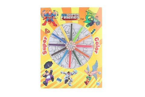 Omalovánky s motivem DC Super Friends. Balení obsahuje 12 barevných pastelek. Věk 3+