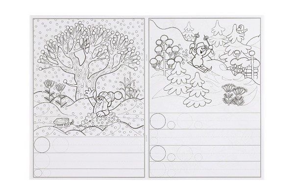 Omalovánky Krtek a zimní radovánky na motivy známého hrdiny animovaného večerníčku Krteček. Krteček baví děti již po více generací a znát ho musí snad každý. Zadní stranu sešitu můžete odstřihnout, a poté ji použít jako předlohu k vybarevní obrázků v omalovánce. V omalovánce Vás zabaví i hlavolamy, bludiště, spojovačky. Velikost omalovánky je A4.