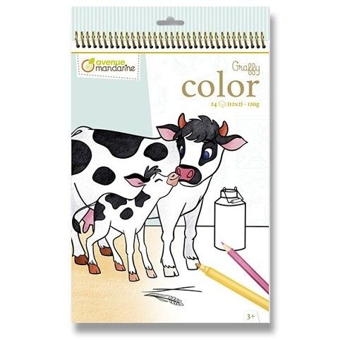 Omalovánky Avenue Mandarine Graffy Color ve velkém formátu s motivy zvířátek z farmy. Předřezané listy pro případné snadnější vytržení z bloku. Omalovánky obsahují 24 listů, 12 motivů po 2 ks. Gramáž 160 g. Vhodné pro děti od 3 let,,Rozměry balení: 21 x 34,2 cm