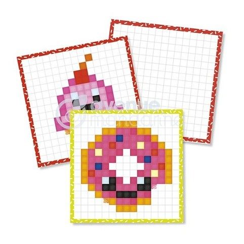Omalovánky Avenue Mandarine Graffy Pixel s motivy sladkostí. Omalovánky jsou určené k překreslení modelu z předchozí stránky. Omalovánky mají kroužkovou vazbu pro zajištění rovného podkladu a čtverečkový papír usnadňující překreslení. Obsahují 24 listů, 12 motivů po 2 ks. Gramáž 250 g. Lze použít na všechny techniky - pastelky, fixy, akvarel atd. Vhodné pro děti od 5 let,,Rozměry balení: 15 x 20,5 cm.