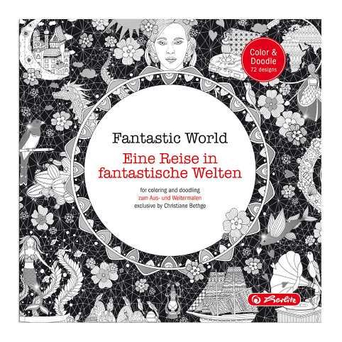 Omalovánky Fantastický svět - doodling, 23 x 23 cm / 36 listů, 72 výkresů, 170 g/m2 bílý papír, který se nepropíjí