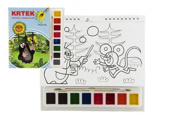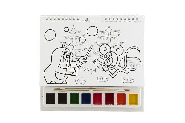 Omalovánky s vodovými barvami a štětcem s motivem Krtka.