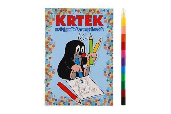 Omalovánky Krtek A5 Maluj podle barevných teček s voskovkami 11ks v sáčku