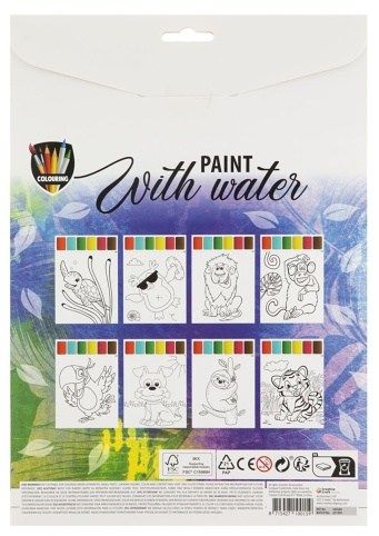 Omalovánky maluj vodou obsahují 8 listů/obrázků a štětec, Velikost A4, K vybarvení stačí pouze štětec a pár kapek vody. Poté, co mokrým štětcem rozetřou barevné stopy, získají krásně barevné ilustrace!
