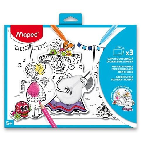 Omalovánky Maped s 3D elementy. Součástí je bloček s lepicími polštářky, díky kterým samostatné elementy připevníte k předloze a díky tomu získáte zajímavý 3D efekt. Obrázek ožije a stane se zajímavou dekorací dětského pokoje. Vhodný pro vybarvování běžnými pastelkami či fixami. Dostupné ve dvou variantách, 3 rozdílné ilustrace. Formát A4. Papír 350 g/m2. Vhodné pro děti od 5 let.