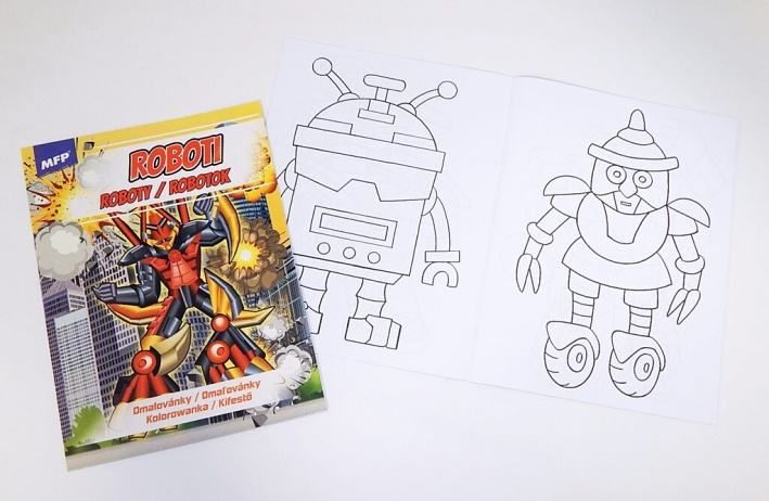 Omalovánky MFP Roboti 210x276/33 Omalovánky mají svou pevnou pozici i v dnešní moderní době. Vymalovávání má pozitivní vliv na jemnou motoriku ruky a omalovánky se často také používají jako nenásilná a zábavná forma vzdělávání. Dle výzkumů rozvíjí kreativitu a pomáhají získat pozornost dětí u témat, které by je normálně příliš nezajímaly. Mají také pozitivní psychologický efekt jako je odbourání stresu a celkové zklidnění.