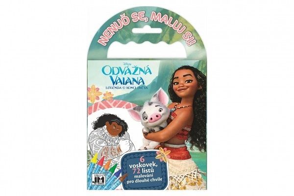 Omalovánky na cesty Odvážná Vaiana 72 listů + 6 ks voskovek 11,5x18cm
