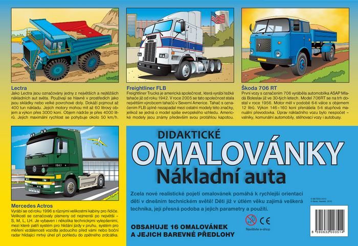 Zcela nové realistické pojetí omalovánek pomáhá k rychlejší orientaci dětí v dnešním technickém světě! Děti již v útlém věku zajímá veškerá technika, její přesná podoba a jejich parametry a použití.