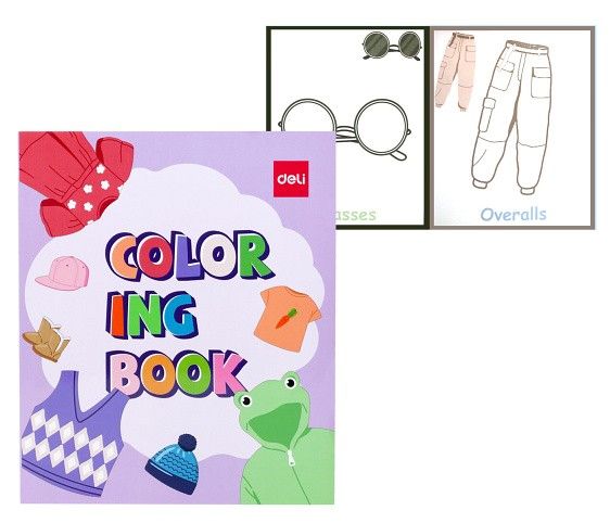 12 listů- hladký papír vhodný pro pastelky a voskovky- anglická slovíčka u obrázků- motivy oblečení- rozměr: 210 x 180mm- gramáž: 120g/m2