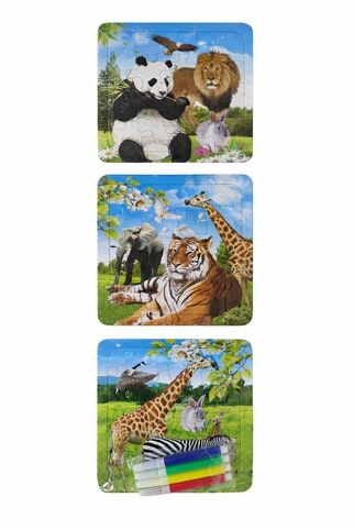 Zábavné dětské puzzle s motivy zvířátek nabízí dvě aktivity v jednom. Na přední straně děti skládají barevné puzzle s krásnými obrázky zvířat z přírody. Puzzle lze rozložit jako leporelo, které vytváří velký obrázek.