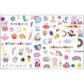 Omalovánky obsahují 24 barevných stran s obrázky k vybarvení a 2 listy originálních tetovaček různých velikostí a tvarů.