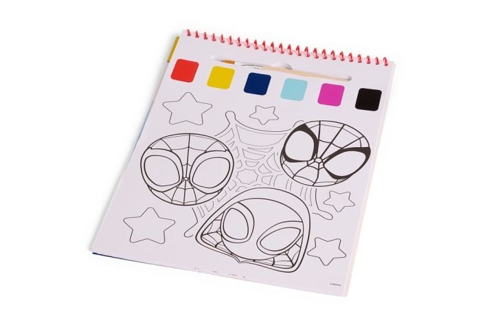 Omalovánky s vodovkami Spidey v kroužkové vazbě. K vymalování použijte pouze vodu. 24 listů.