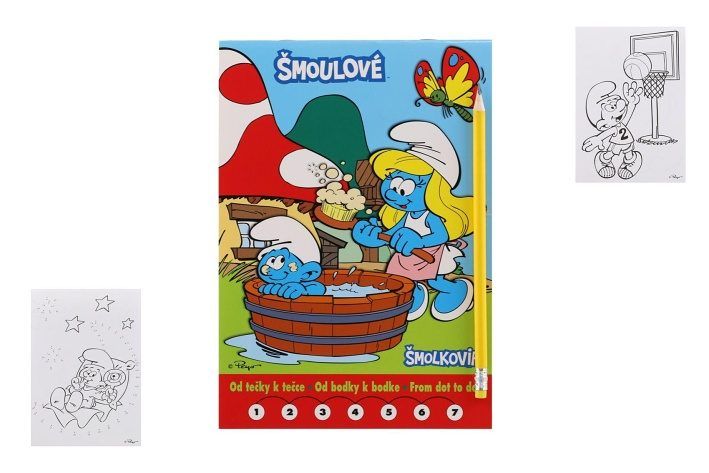 Omalovánky Šmoulové Od tečky k tečce + tužka s gumou v sáčku