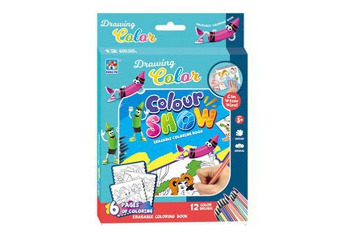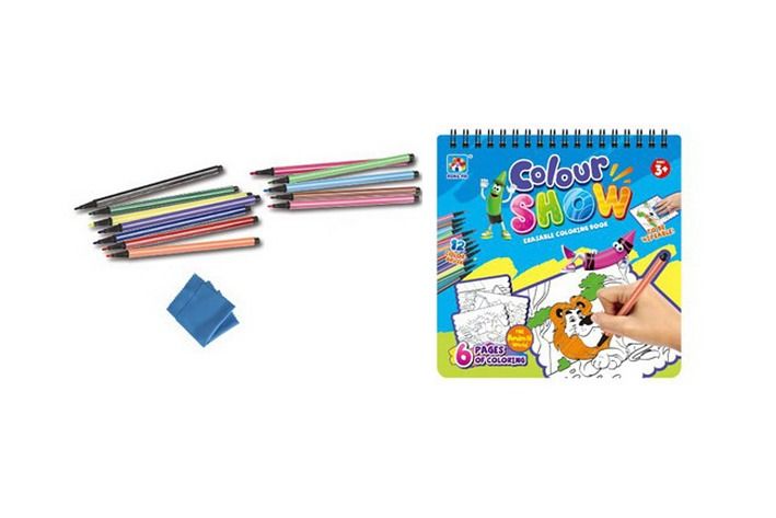 Omalovánky, stíratelné, 6 obrázků. Rozměry 17x17 cm. Balení obsahuje 12 fixů a hadřík.