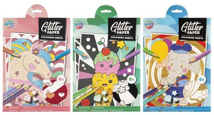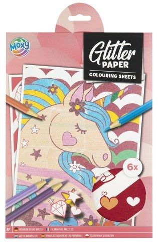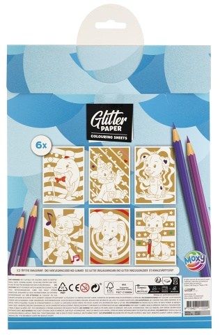 Omalovánky třyptivé A4 – balení obsahuje 6 listů třpytivých omalovánek velikosti A4, ve třech různých druzích .
