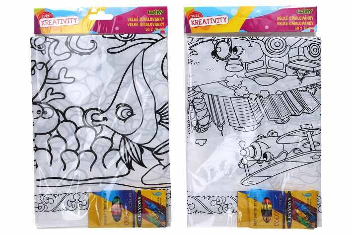 Omalovánky velké o velikosti 50x70 cm + 6ks voskovek