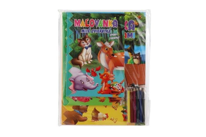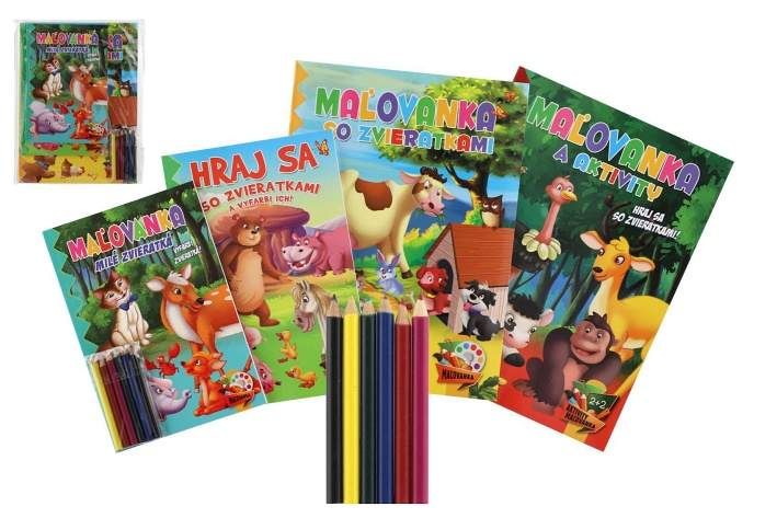 Omalovánky+aktivity/Maľovanky+aktivity Zvířátka/zvieratká 4ks + pastelky CZ+SK verze v sáč