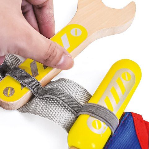 Dětský opasek na nářadí s nastavitelnou délkou obsahuje 17 dílů. Je vyroben z pevného plátna se zapínací sponou pomocí, které se snadno nasazuje a sundavá. Malí hobby řemeslníci si trénují své motorické dovednosti pomocí dětských nástrojů a mohou se nechat unášet svou kreativitou a představivostí.