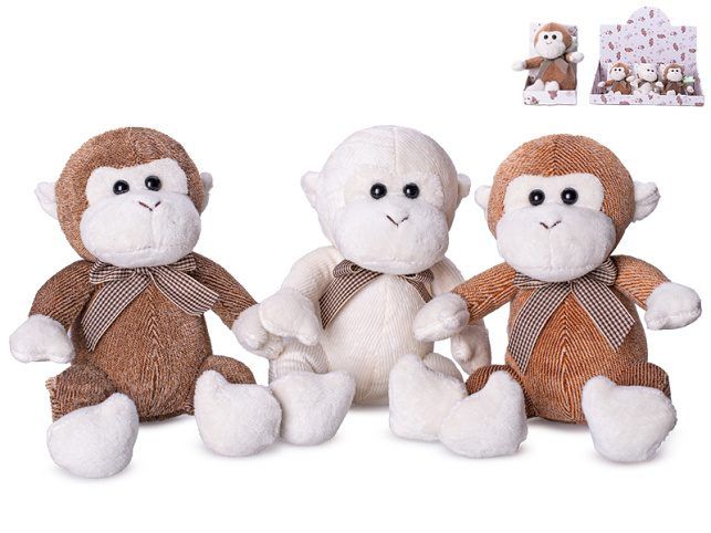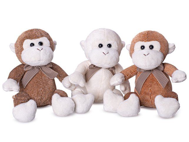 Opice plyšová 15cm sedící s mašlí 3barvy v krabičce