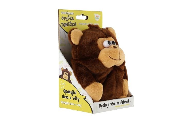 Rozkošný opička Tonička nadchne celou rodinu a zároveň si s ní užijete mnoho zábavy! Opička Tonička totiž umí mluvit - stačí na Tonču promluvit a ona legračně opakuje vše co uslyší svým pozměněným hlasem a bude u toho také roztomile přikyvovat hlavou. Opičku Toničku si tak určitě zamilujete a stane se důležitou částí Vaší rodiny! Hračka je na baterie 3x AAA, které jsou součástí balení.