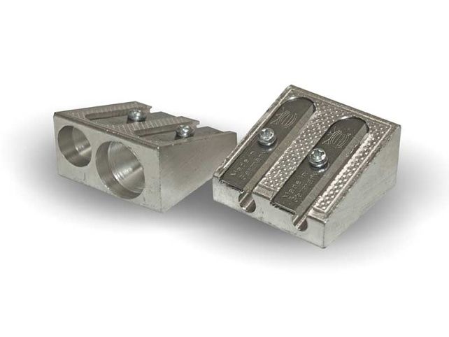 Hliníkové školní ořezávátko/strouhátko bez zásobníku na odpad - ořezávátko patří do nezbytné výbavy každého školáka! Ořezávátko má 2 otvory. Břity jsou připevněné šroubkem, takže jdou demontovat a nabrousit. Uvedená cena je za 1 ks. Ořezávátka jsou balena po 20 ks v papírové krabičce.