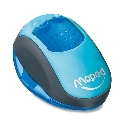 Plastové ořezávátko s průhlednou odpadní nádobkou a 2 otvory. Krycí vršek zabraňující vysypání grafitu z ořezávátka. Vhodné do penálu - nešpiní.