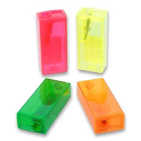Plastové ořezávátko s průhlednou odpadní nádobkou. Ořezávátko s jedním otvorem.