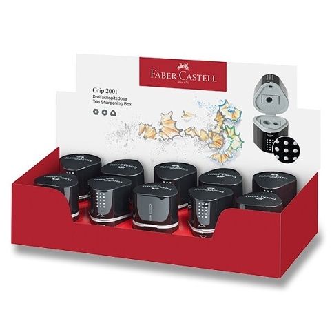 Ořezávátko Faber-Castell Grip 2001 Trio - s odpadní nádobkou 3 otvory, černé