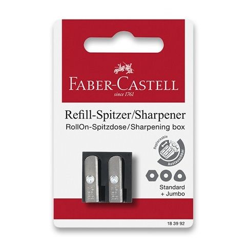 Kvalitní ořezávátkoFaber-Castell RollOn bez odpadní nádobky a se 2 otvory. Vhodné je pro klasické i silné (JUMBO) pastelky a grafitové tužky. Lze použít jako náhradní náplň pro ořezávátka RollOn. S bezpečnostním šroubem.